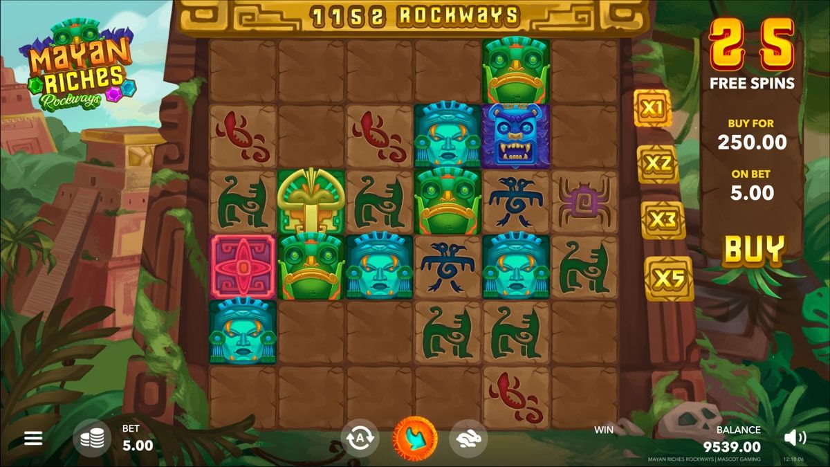 As a prominent casino slot developer, we designed "Mayan Riches" to offer players a thrilling experience with its Rockways feature. Each reel varies in height with every spin, ranging from 2 to 6 symbols. This setup can span from 64 to 46,656 payways. Notably, the game unfolds on a 6x6 grid, making the Rockfall feature and Rockfall Multiplier especially engaging. Brightly colored symbols and a great soundtrack add to its charm.