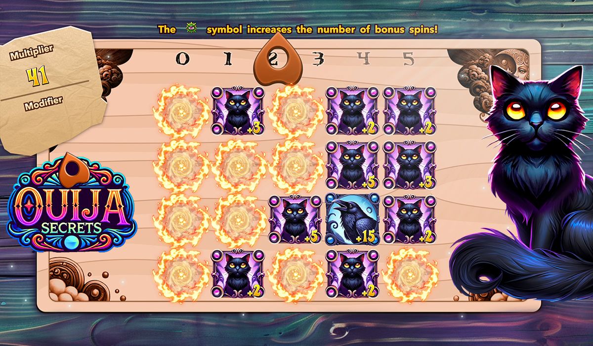 Q: I have to admit, this is my favorite type of bonus game. It’s always so exciting when you anticipate with each spin what symbol will land next. And I love how you visualized it as a Ouija board! What went into your decision-making when it came to the game mechanics and features?