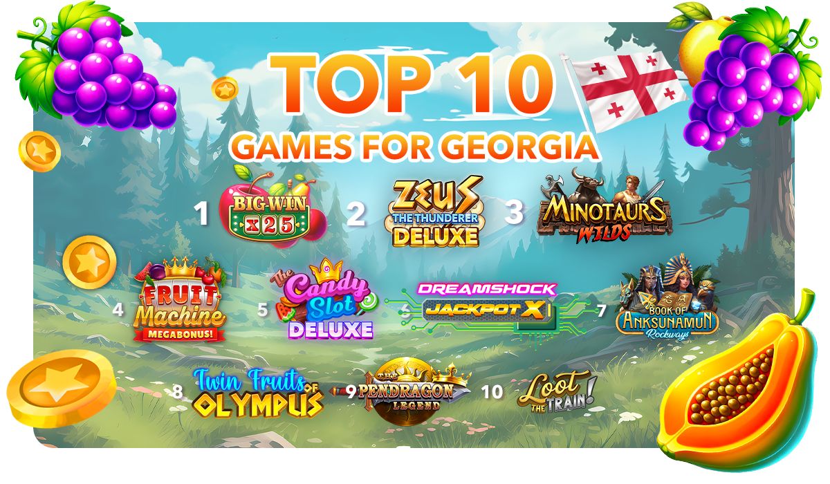 We have carefully selected a diverse range of games from our extensive portfolio that we believe will resonate perfectly with Georgian players. All the games in this top 10 list feature the most popular element among players—Wild Symbols. Additionally, six of these games incorporate our renowned Risk and Buy feature, which allows players either to buy their way directly into the Bonus game or Free Spins, or to risk their winnings for a chance to get a win multiplier. "Dreamshock: Jackpot X" offers a unique jackpot mechanic with three different types of jackpots. This selection includes classic fruit slots, mythology-themed games, adventure titles, and ancient Egyptian themes to cater to the varied preferences of our audience.