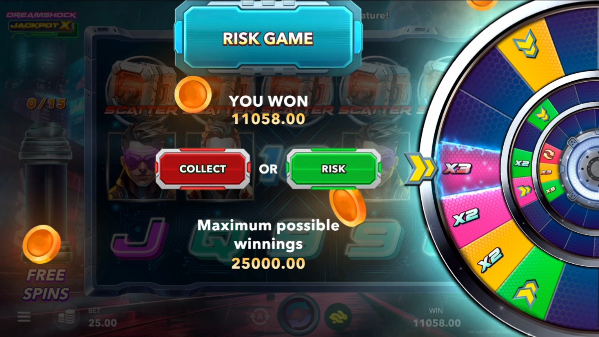 For the daring, DreamShock: Jackpot X offers the Risk game—a chance to gamble your winnings on a multi-level wheel. Spin the wheel and you could increase your rewards with multipliers escalating to an impressive x1000 of your total bet.
