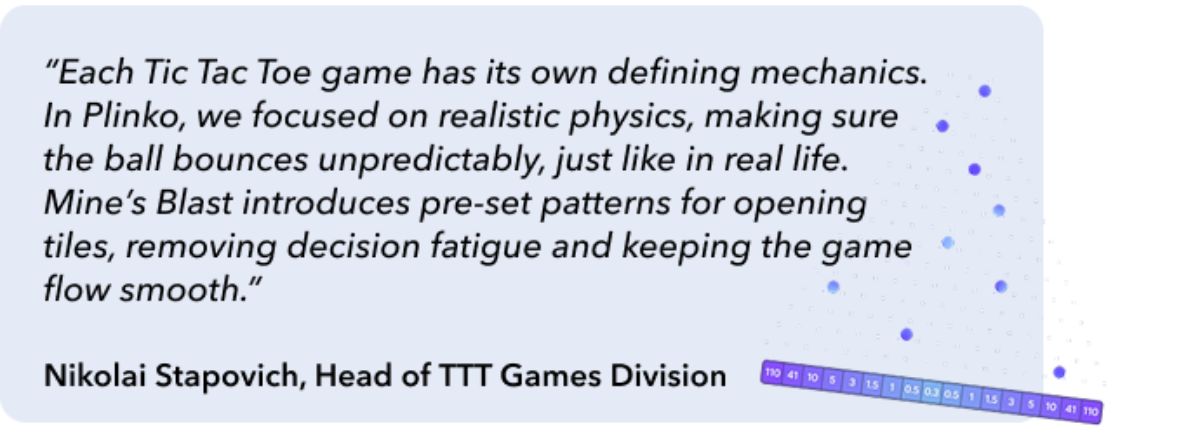 We launched Tic Tac Toe Games in January 2025, with Space Blaze as the first release, setting the tone for the brand. Now, we’re expanding the collection with Crash, Plinko, Mines, Dice, Keno, and a huge amount of other games, designed to deliver fast, rewarding gameplay without unnecessary complexity.