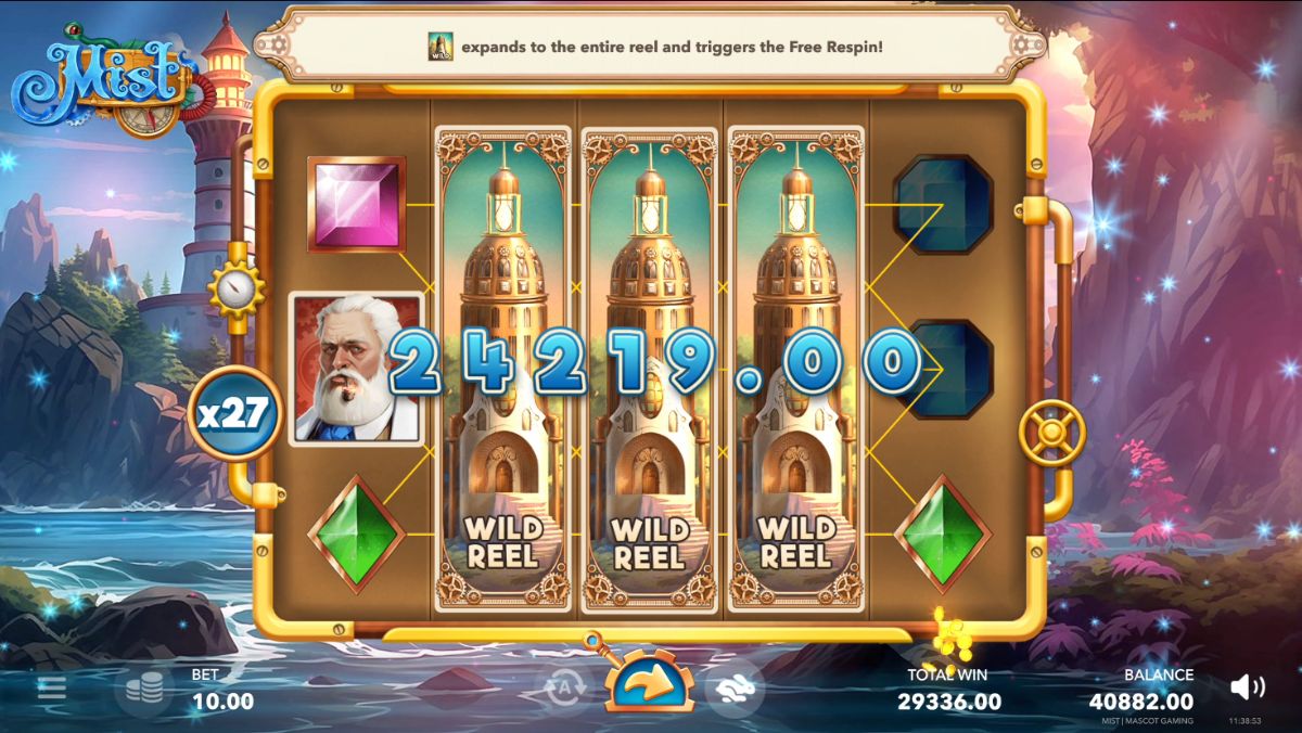 The hallmark feature of "Mist" is the Wild Symbol, which not only substitutes for other symbols to forge winning combinations but also expands to cover the entire reel. This occurs on reels 2, 3, and 4, triggering a Free Respin while the Wild Reel remains locked in place, significantly boosting the player's chances of achieving substantial wins.