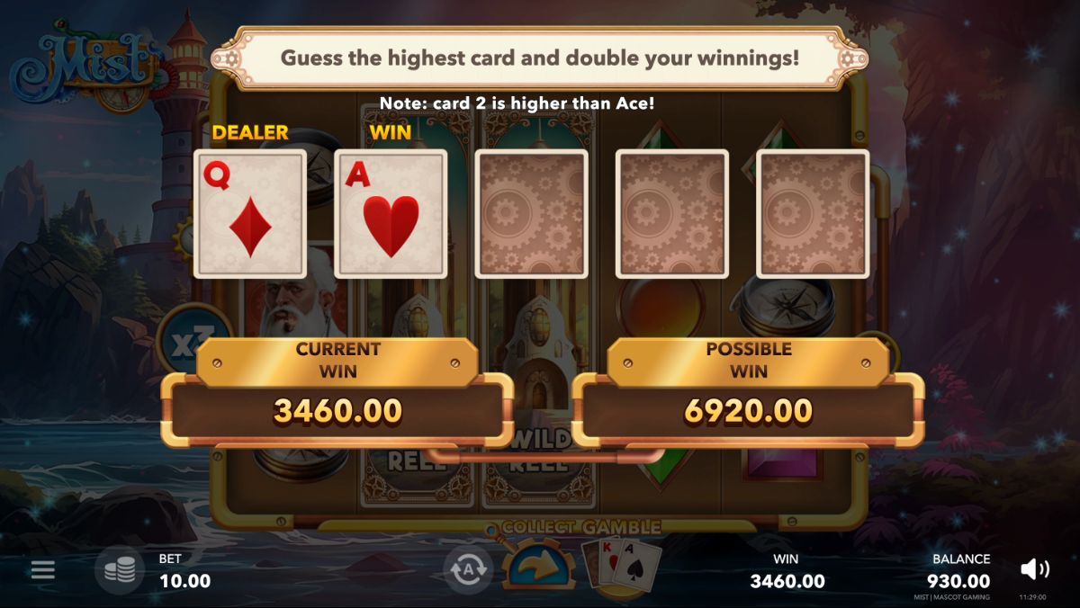 Additionally, Mascot Gaming introduces a Gamble feature where players can choose to risk their winnings in an exhilarating high-stakes card game against the dealer. The goal is to select a card higher than the dealer's, offering an opportunity to double the winnings.
