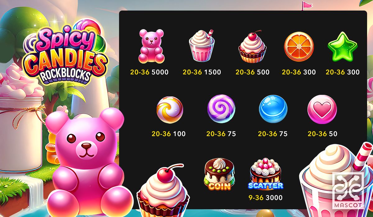 Spicy Candies Rockblocks is more than a sugary spectacle—it's a bold, dynamic game that tempts you with sweet rewards and dares you to take risks. The sugary visuals lure you in, but beneath the sweet exterior lies a game that rewards persistence, and a bit of daring. Every spin feels like dipping into a candy jar full of surprises, where a harmless treat can suddenly pack a punch. It’s lighthearted yet strategic, fun yet rewarding—a game that playfully nudges you to take just one more spin. Whether you're drawn in by the frequent payouts, the polished visuals, or the well-balanced mechanics, this candy slot provides an experience that stands out without relying on unnecessary complexity.