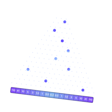 A ball drops from the top and bounces off pegs arranged in a pyramid shape as it falls. At the bottom, it lands in one of 17 multiplier slots, determining the player’s winnings based on the multiplier